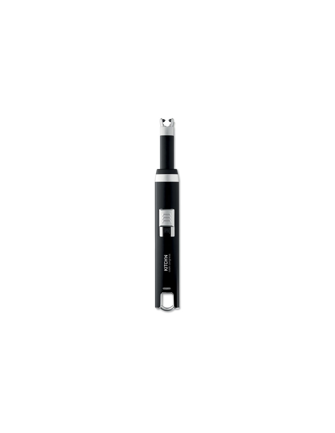 Accendino ricaricabile USB con fiamma ad arco singolo. Batteria agli ioni di litio da 220 mAh. Compreso cavo di ricarica USB.