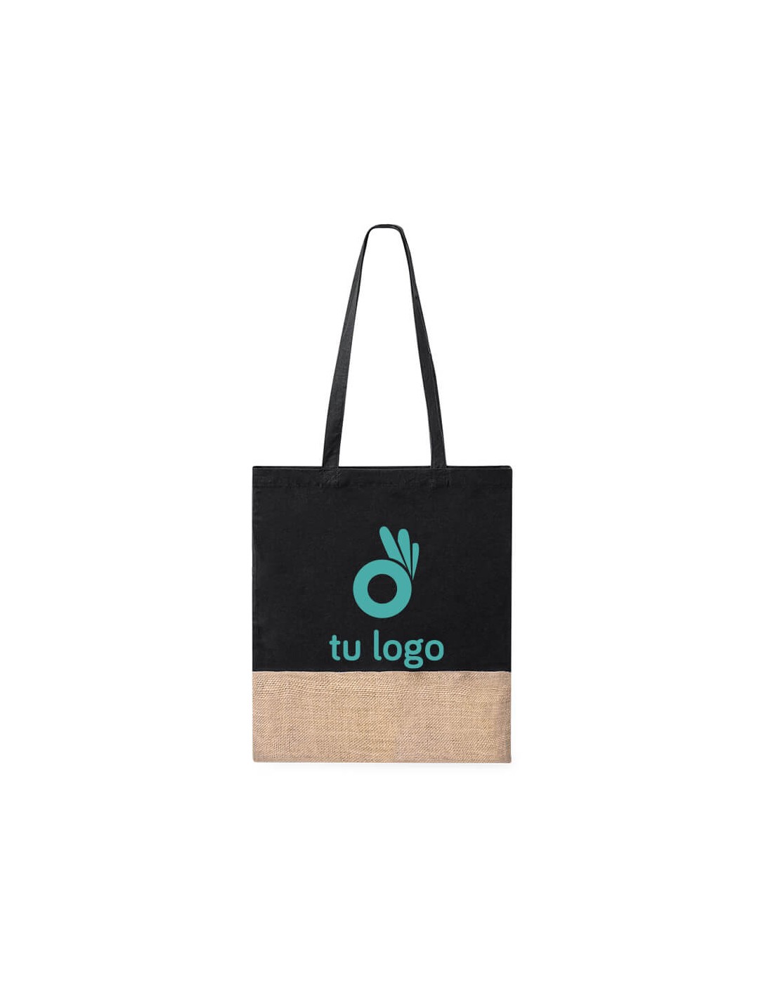 Bolsa de asas en material 100% algodón de 120 g/m2 en combinación con yute. Confortables asas planas y disponible en varios colores. Resistencia hasta 8kg de peso.
