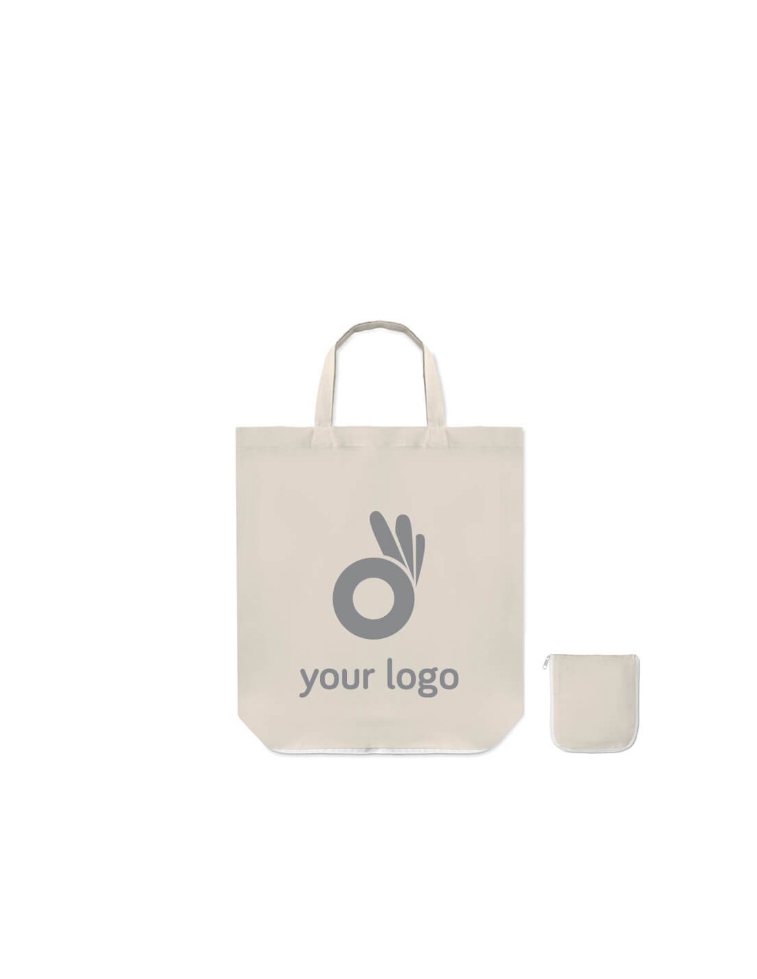 Bolsas de algodón con asas cortas 135g personalizadas. Presentan un diseño básico de algodón en color beige, ideal para crear un mayor contraste al añadir tu logo de empresa en ella. Se caracterizan por ser bolsas plegables, por lo que la podrás llevar siempre contigo y usarla siempre que lo neceistes. Al plegarla, dispone de un cierre de cremallera para una mayor seguridad y comodidad de transporte. Disponibles en color beige. Material: Algodón Medidas: 38 x 12 x 42 cm Peso: 57 g