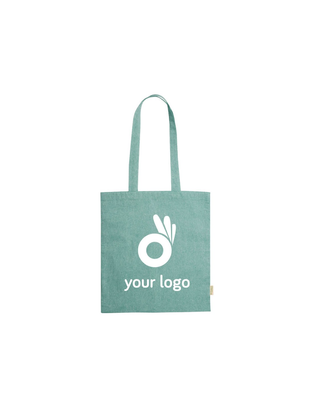 Bolsa de línea nature en material 100% algodón reciclado de 120 g/m2. Asas largas de 70cm con refuerzo y de acabado cosido. Distintivo en etiqueta lateral y resistencia hasta 8 kg de peso. Disponible en variada gama de colores nature.