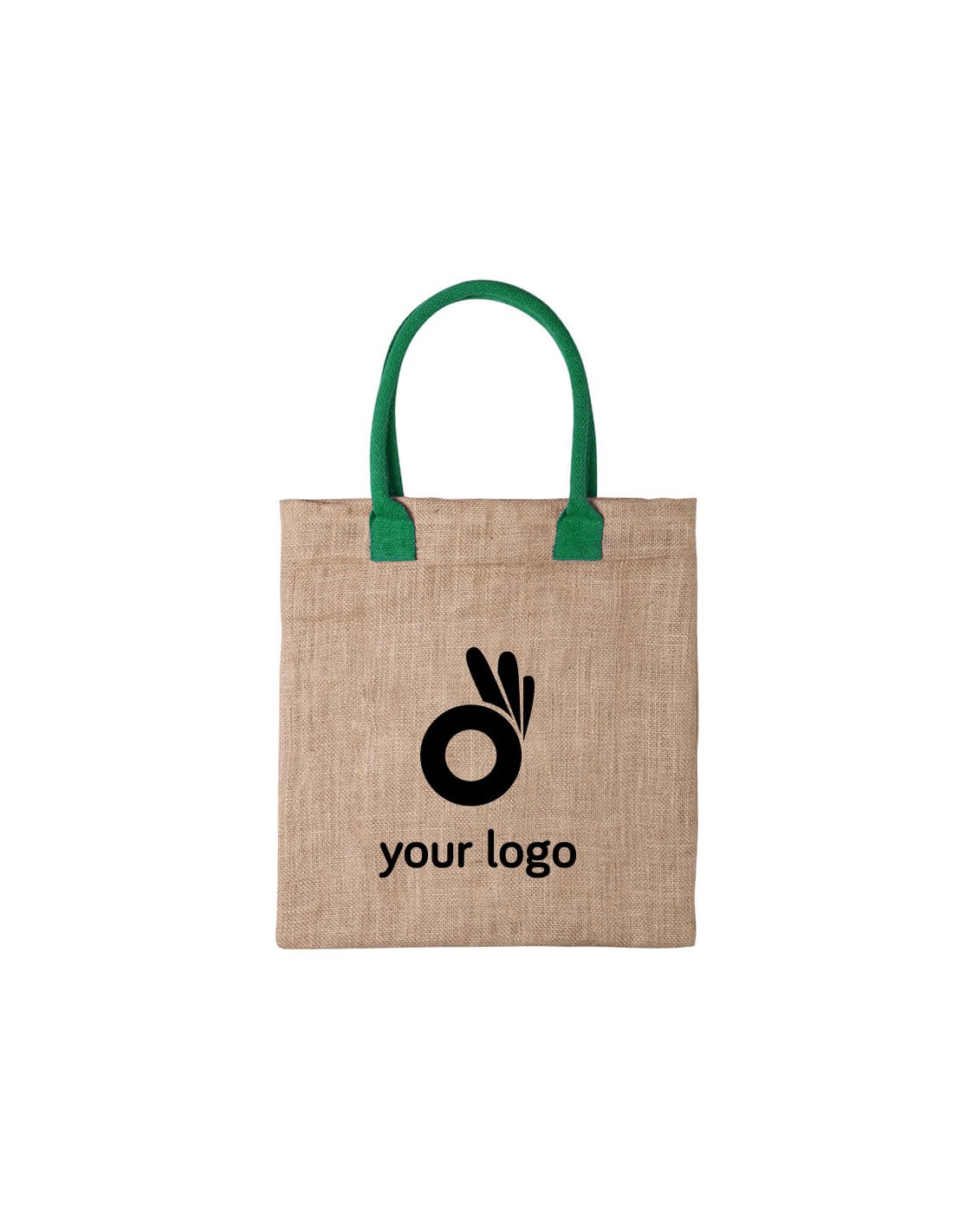 Bolsa de yute con asas de algodón medianas y reforzadas en variada gama de vivos colores. Resistencia hasta 9kg de peso.