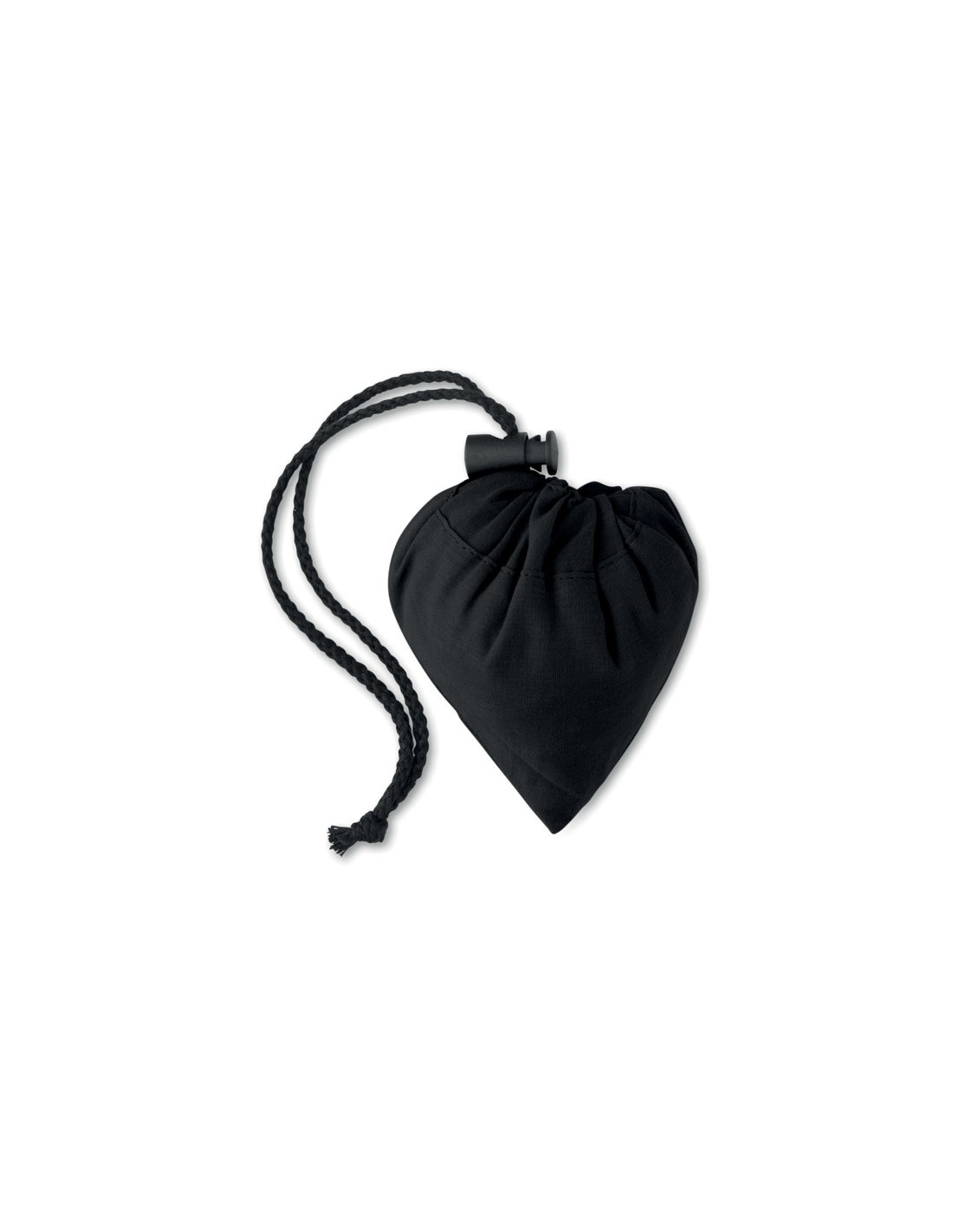 Shopper ripiegabile in cotone 105gr con manici corti. In pouch con chiusura a coulisse. Prodotto secondo uno standard certificato che regola l'uso di sostanze nocive nei tessili.