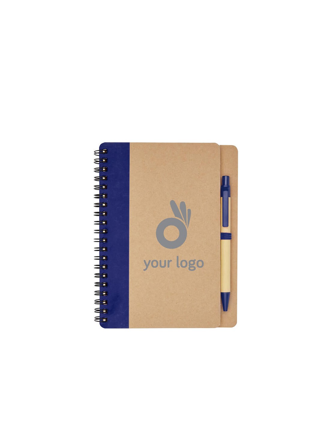 Cuaderno con cubierta de papel reciclado con 60 hojas de papel reciclado tamaño de referencia A6 rayado y un bolígrafo a juego. El cuaderno y el bolígrafo se empaquetan juntos.