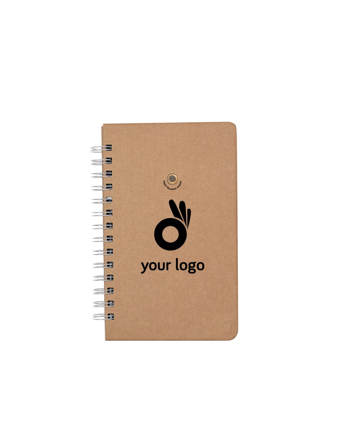 Libreta de semillas, con anillas y tapas rígidas, fabricada en resistente cartón reciclado. Incluye 80 hojas interiores, con disposición a una raya en papel reciclado. Además, en la portada contiene una cápsula con semillas de flores silvestres, en colores surtidos y con instrucciones de plantado en la cubierta trasera.El cartón reciclado proviene del reaprovechamiento de excedente de fabricaciones y reciclaje de papel en el final de su vida útil, convirtiéndose en un lienzo ecológico y sostenible. Portada Rígida. 80 Hojas. Flores Silvestres