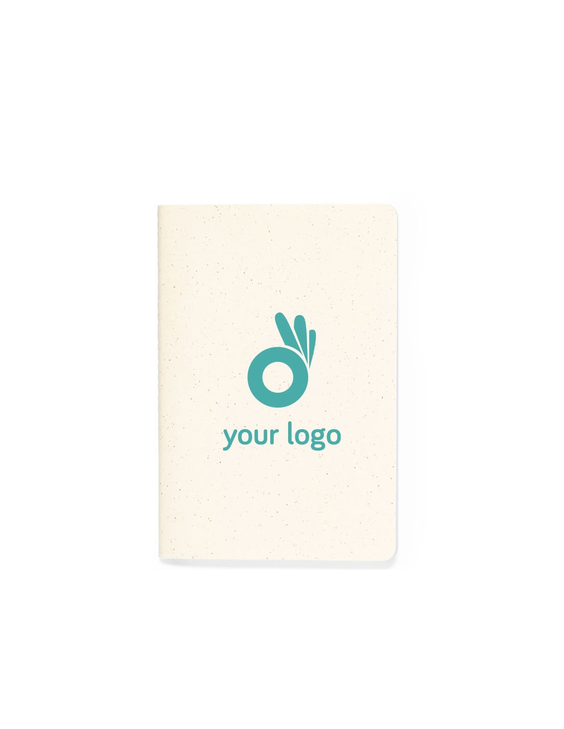 Libreta con tapas fabricadas en cartón reciclado y acabado cosido a juego en el lomo. Interior con 60 hojas blancas lisas. Presentado en bolsa individual reciclada. 60 Hojas