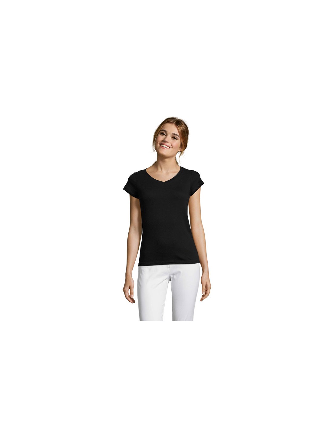 SOL'S MOON Women, Tshirt 150g/m², La t-shirt di riferimento con scollo a 'V' profondo, in versione femminile. Punto vita sfiancato, ideale per l'universo della moda. 100% cotone semipettinato Ringspun, nastro di rinforzo sul collo, maniche corte, punto vita sfiancato, Scollo a «V» con bordo a costina con elastan, .
