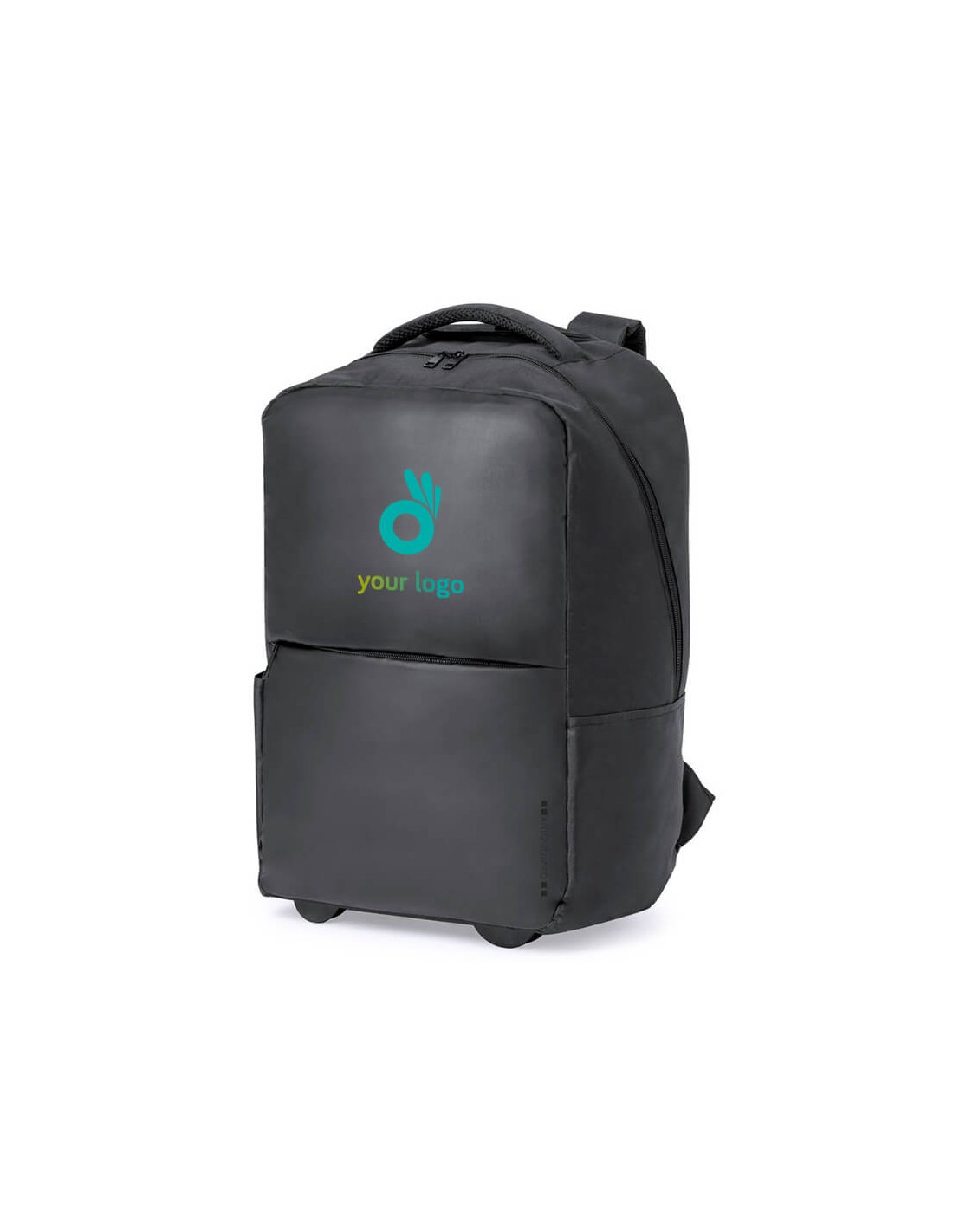 Mochila trolley de Antonio Miró, fabricada en resistente poliéster 300D con acabados en negro. Compartimento principal y bolsillo exterior con cierre de cremallera a juego, asa de transporte acolchada y bolsillos laterales con logotipo de la marca en un lado. Compartimento interior acolchado para ordenador portátil de hasta 15 pulgadas y bolsillo para tablet de hasta 11 pulgadas. Cintas para hombros acolchadas y ajustables. Bolsillo Acolchado para Portátil. Cintas Acolchadas