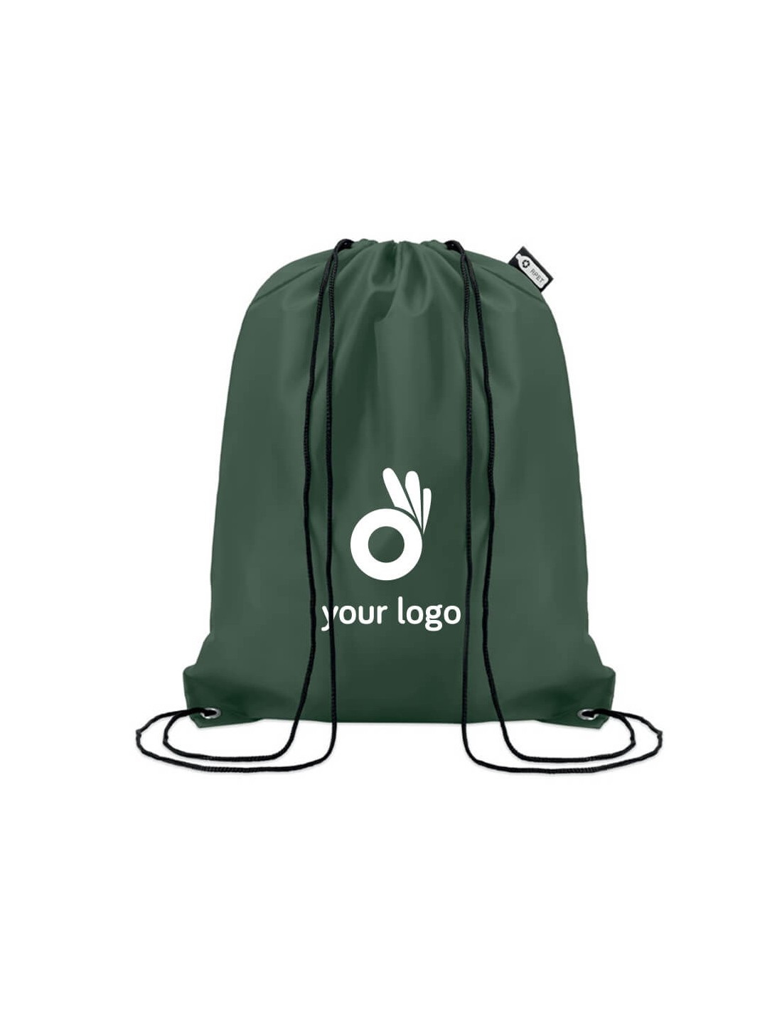 Mochilas de cuerdas de plástico reciclado customizadas. Se trata de mochilas con cordón RPET con tiras de PP, por lo que es un material respetuoso con el medio ambiente, elaborado a partir de botellas de plástico recicladas. Gracias a su cierre de cuerda, es un producto que garantiza un buen sellado y protección de los objetos que se incorporen en su interior. Dispone de una gran área de marcaje, por lo que tu logo obtendrá una gran visibilidad ante miles de personas. Disponibles en color blanco, negro, azul marino, azul y rojo. Material: RPET Medidas: 36 x 40 cm Peso: 28 g
