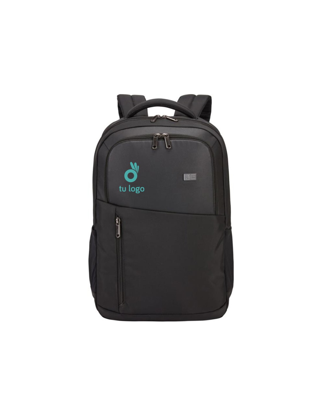 Mochilas Case logic personalizadas de diseño oderno y elegante fabricadas con poliéster de 420D. Estas mochilas incorporan un bolsillo principal con una gran capacidad de almacenamiento, un bolsillo acolchado para guardar y proteger un portátil de 15,6", un bolsillo para una tableta de hasta 12" y un bolsillo frontal para gaurdar objetivos pequeños. Disponible en color negro. Material: Poliéster 420D Medidas: 31 x 24 x 44 cm Peso: 870 g