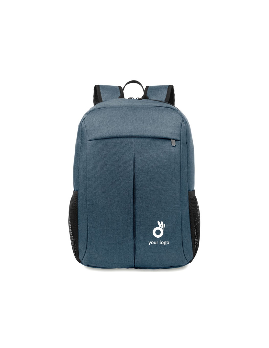 Mochilas publicitarias para portátil fabricadas con resistente poliéster, lo que garantiza su larga durabilidad. Incluye un compartimento interno para ordenadores de hasta 15" y otro adicional para tabletas. Además presenta un bolsillo frontal con cierre de cremallera, por lo que no tendrás límites a la hora de guardar objetos. Presenta, tanto en las asas como en la parte trasera, zonas acolchadas para garantizar una comodidad sin igual. También dispone de sujeción para trolleys, por lo que podrás llevarla contigo siempre que quieras. Disponibles en color negro y azul Material: Poliéster Medidas: 30 x 14 x 45 cm Peso: 600 g
