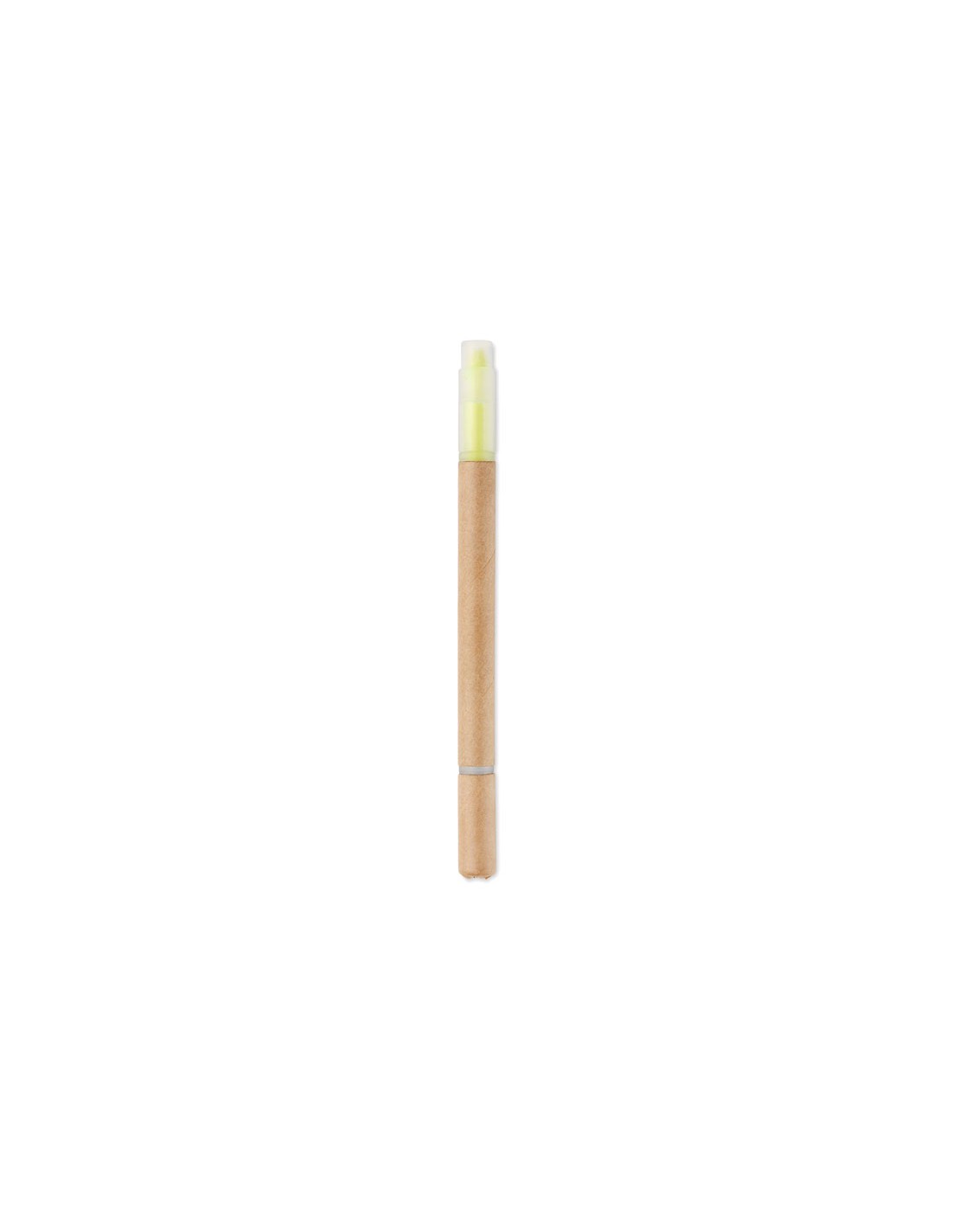 2 in 1 penna in cartone con inchiostro blu ed evidenziatore giallo.