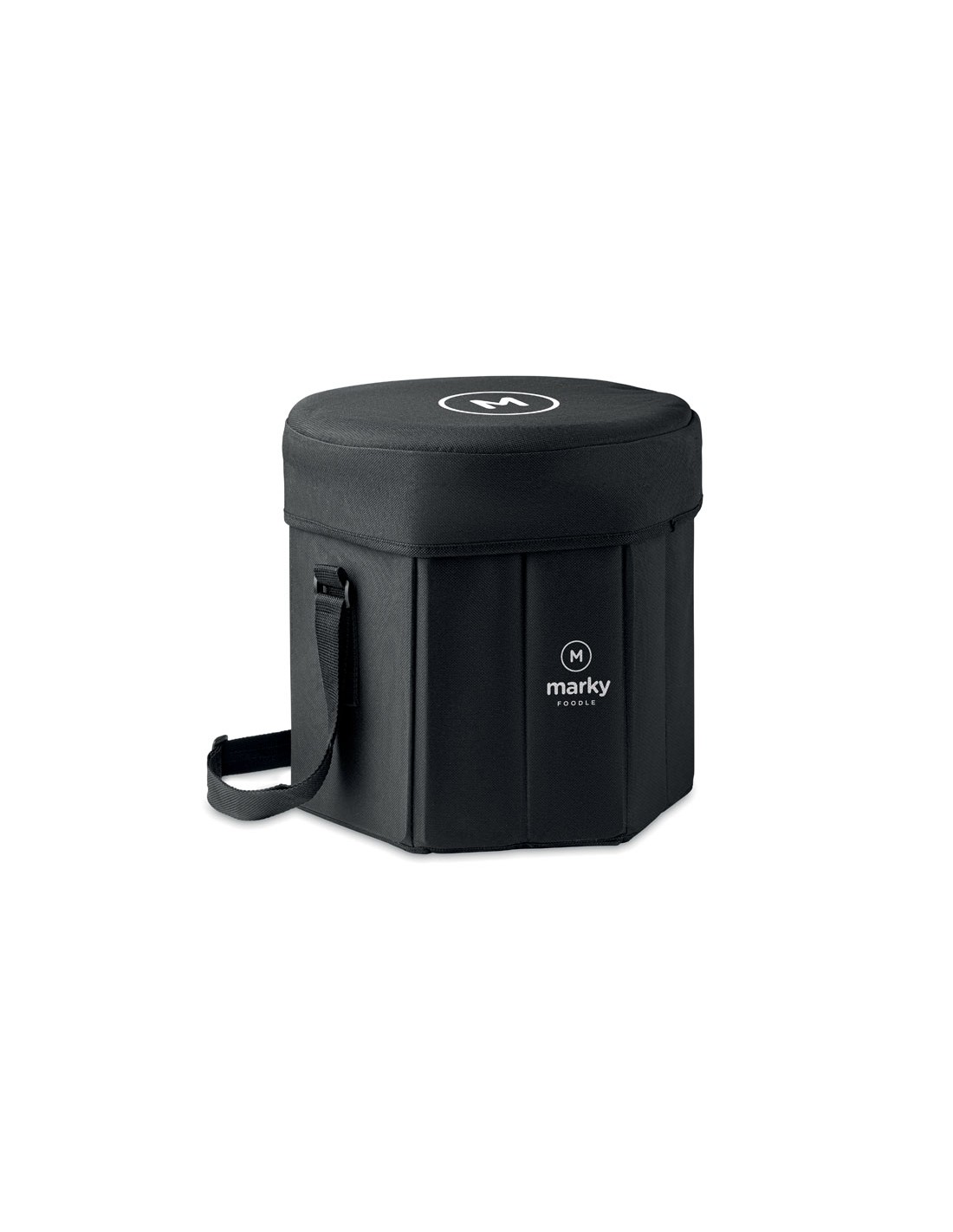 Sgabello o tavolo pieghevole in poliestere 600D con borsa termica isolata con foglio di alluminio e cinghia da trasporto. Peso massimo 80 kg.