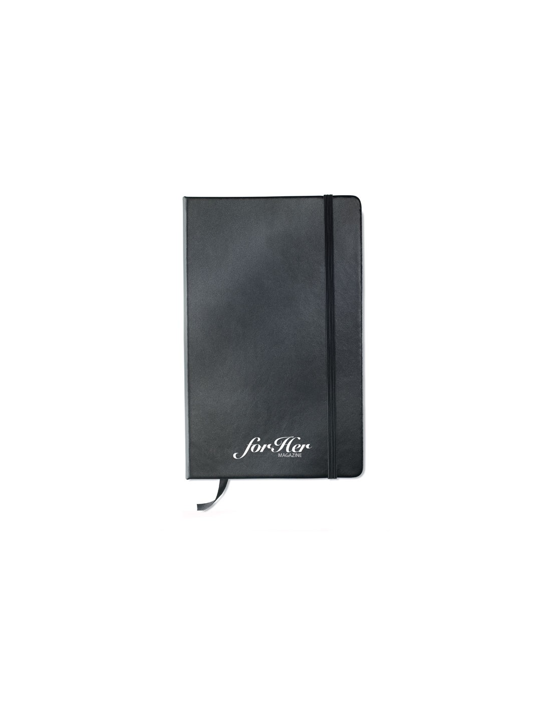 Notebook A5 con copertina rigida in PU. 192 pagine a righe (96 fogli). Chiusura con elastico in tono e nastro segnapagina.