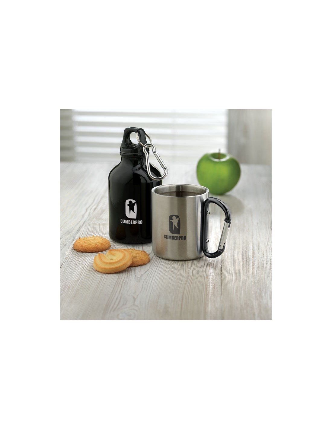 Tazza con moschettone, doppio strato in acciaio inossidabile. 220 ml.