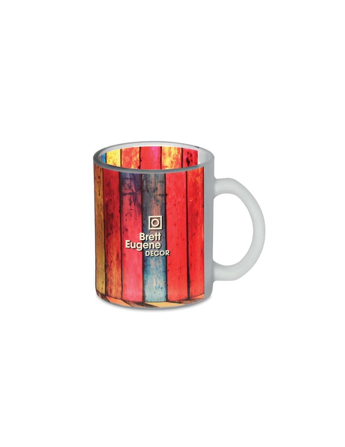 Tazza in vetro opaco con copertura speciale per sublimazione. Capacití 300ml.