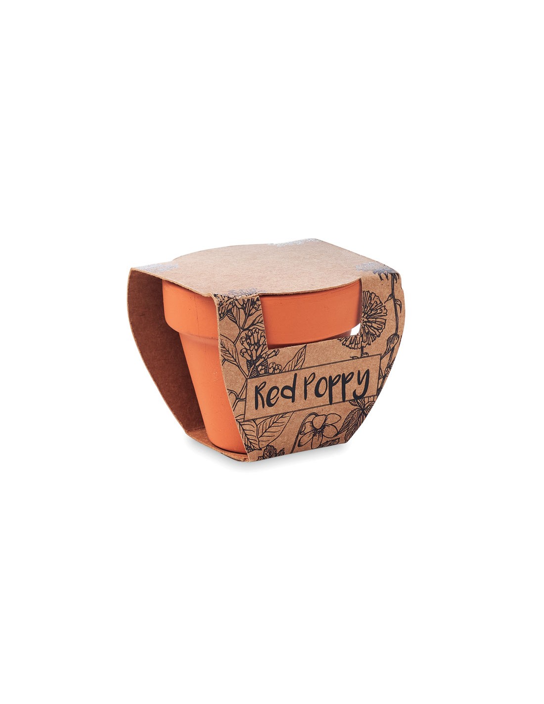 Piccolo vaso di terracotta in terracotta con semi di papavero. Prodotto in UE.